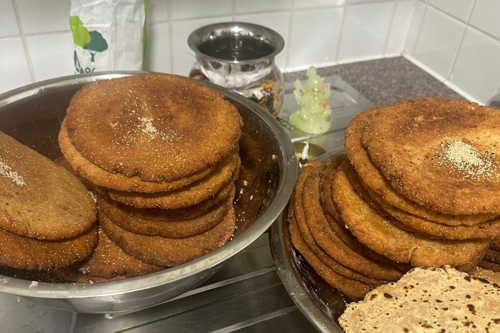 8. Fry on both sides till the bread is reddish brown on low flame. The Roth should be cooked from inside.
